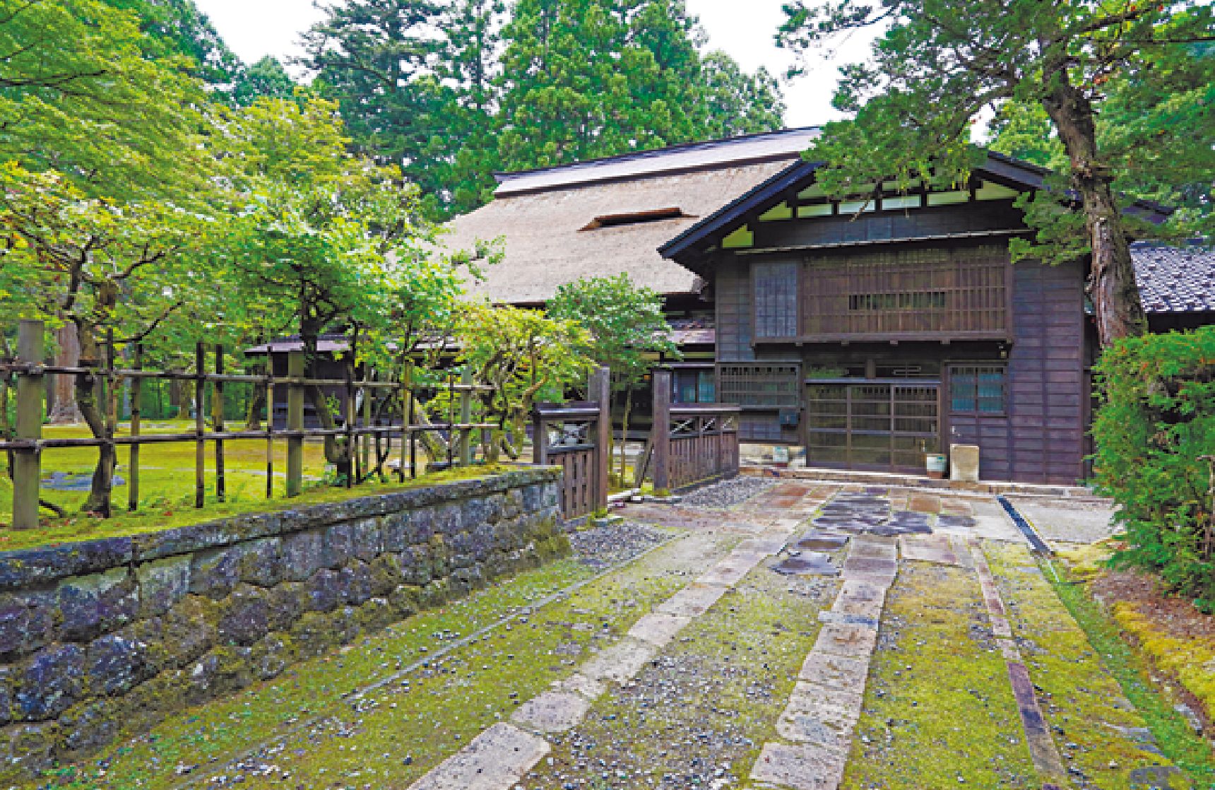 杉木立の中に立つ、かやぶき屋根の林富永邸。築140年もの歴史を持つ上越の名家だ