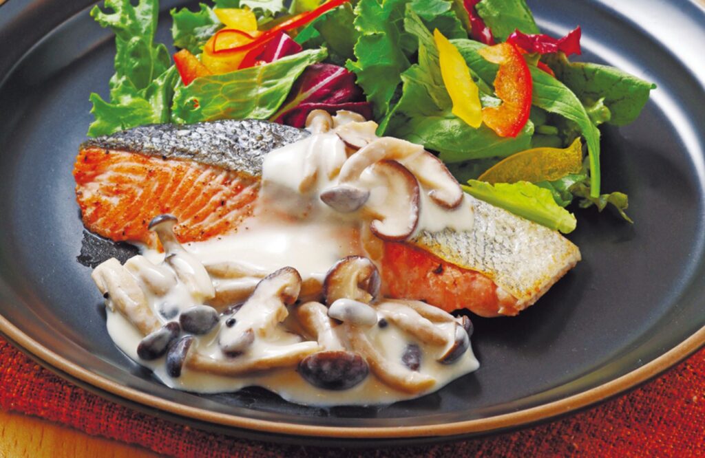 主菜 | 鮭のソテー キノコのみそヨーグルトかけ
