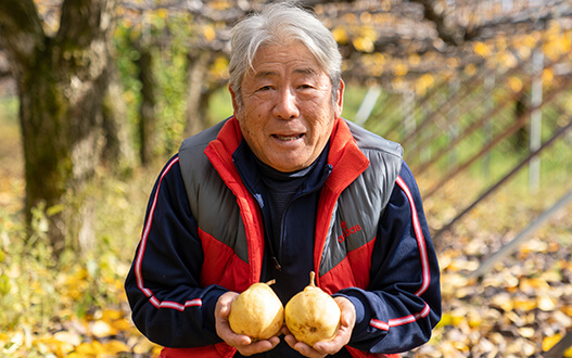 地元の農業高校を卒業後、明治時代から約100年続く家業の和泉果樹園に入社。50年近くにわたり和梨やル・レクチエの栽培に携わる。