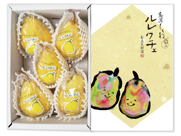 そのル・レクチエを丹精込めて育てているのが、新潟市南区で100年以上の歴史を持つ『和泉果樹園』。有機肥料を使った昔ながらの農法にこだわり、安心して味わえる果実を大切に育てています。収穫後は約40日間の追熟を経て、果皮は鮮やかな黄色に変わり、まさに食べ頃を迎えます。