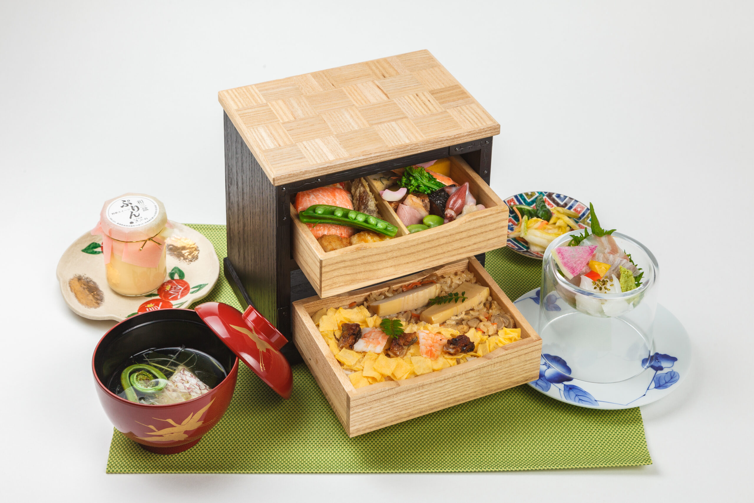 名物の「桐たんす御膳」は、加茂市の伝統工芸である桐箪笥の職人に特注した美麗な器に、季節感を大切にした四季折々の料理を詰め込んだ遊び心と技が光る逸品です。「加茂市の魅力を発信できる、お客様に感動して頂けるお料理を提供したい」という思いから、2021年の新型ウイルス禍真っ只中に誕生しました。