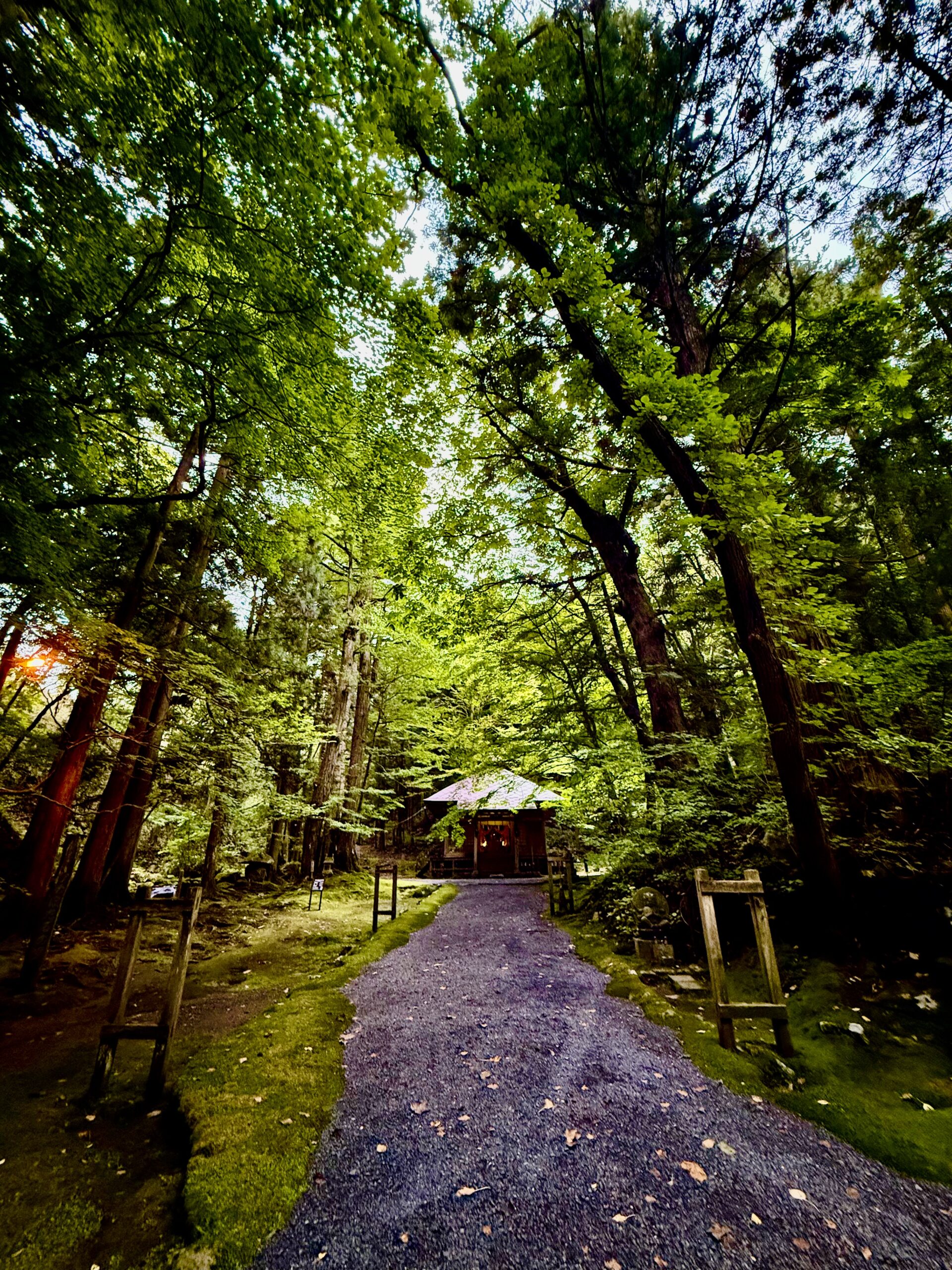 青森では階上町にある「東門」という、昔ながらの日本家屋でお蕎麦とカレーが食べられるお店へ。こちらは時々ジャズ・ライヴも行うお店で、毎年演奏しています。ここのオーナーさんは、近隣の神社を含む広い土地のオーナーでもあり、この神社が素晴らしいんです。鳥居をくぐって本殿に向かって歩く途中の、なんとも神聖なこと。。
