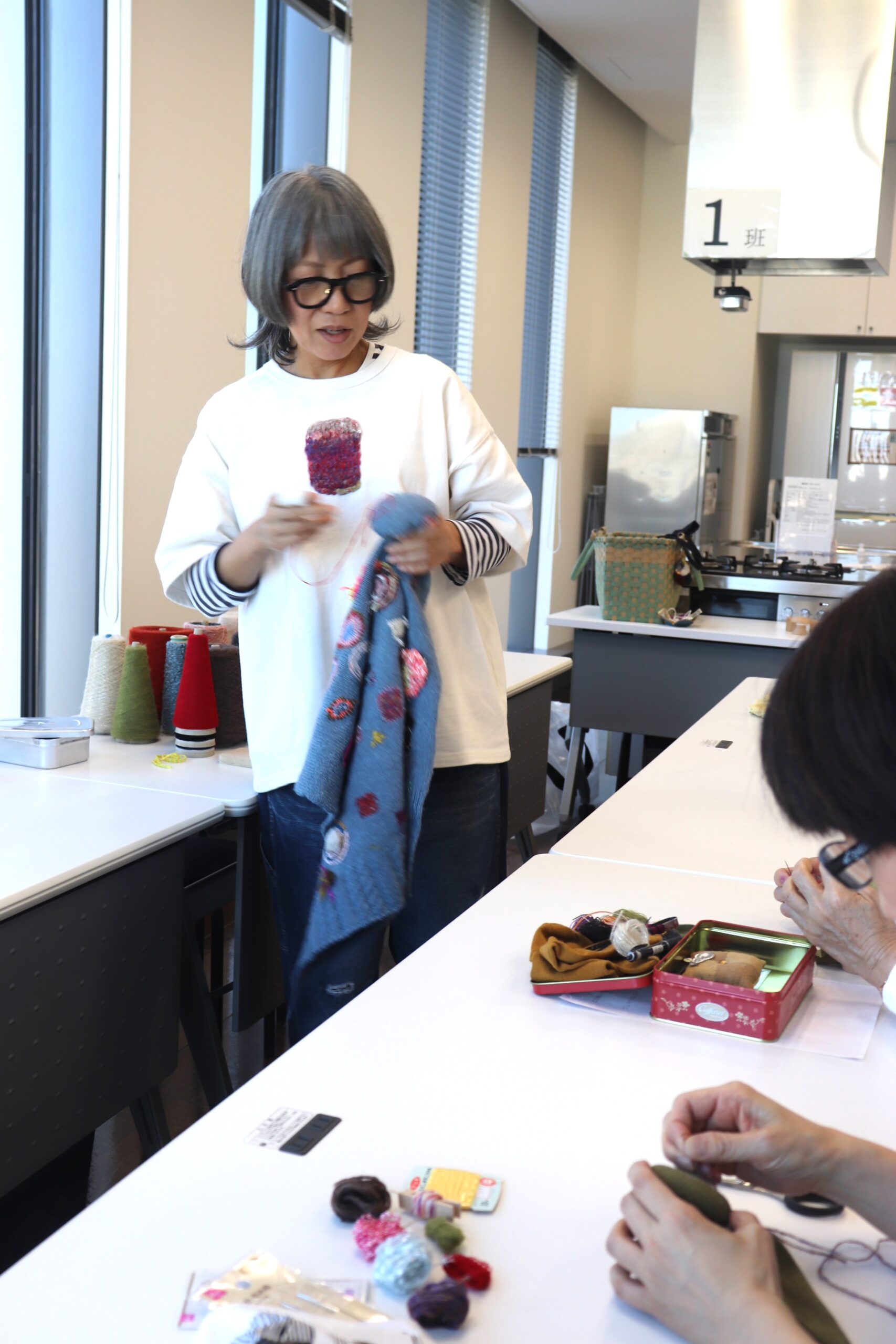 講座「自由気ままにダーニング♪」は、シミがついた服やすり切れた靴下などをかわいく補強・補修する技術を学ぶ手芸講座。「soramame」の名で活動する長谷川久美子さん(53)が講師を務める。