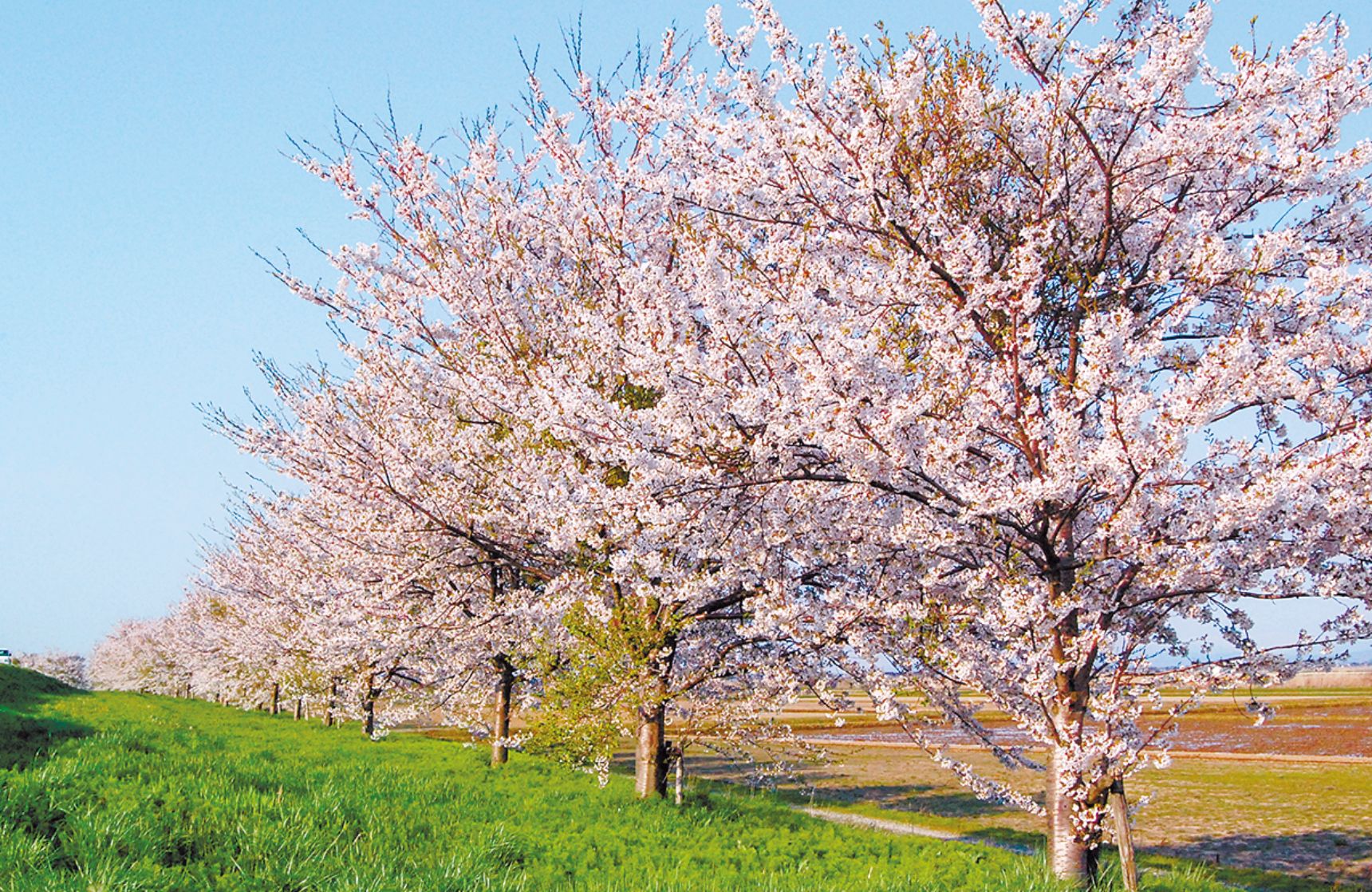 桜が咲き誇る長岡市中之島地域の万本桜植樹帯(提供:長岡ロケなび)