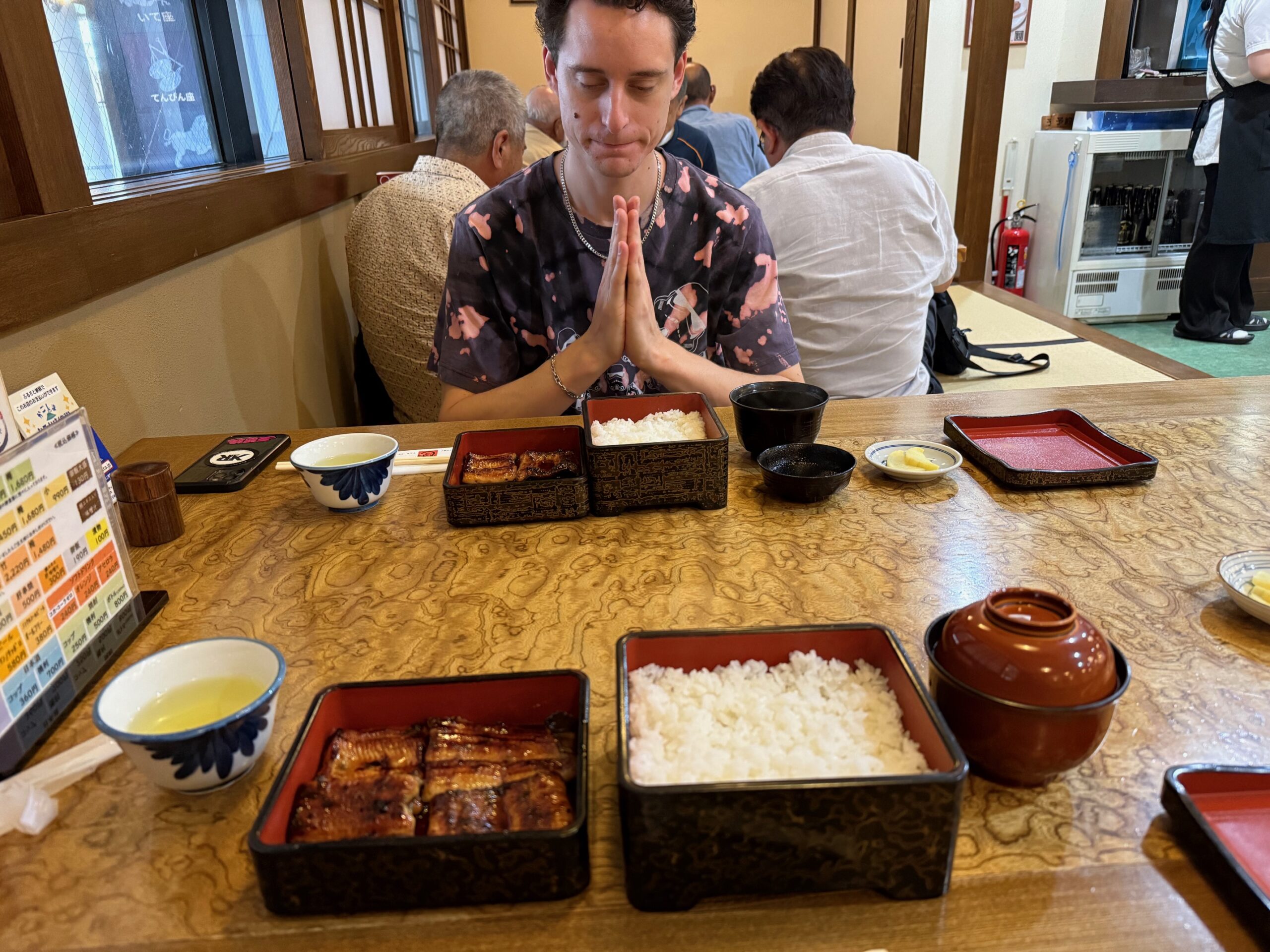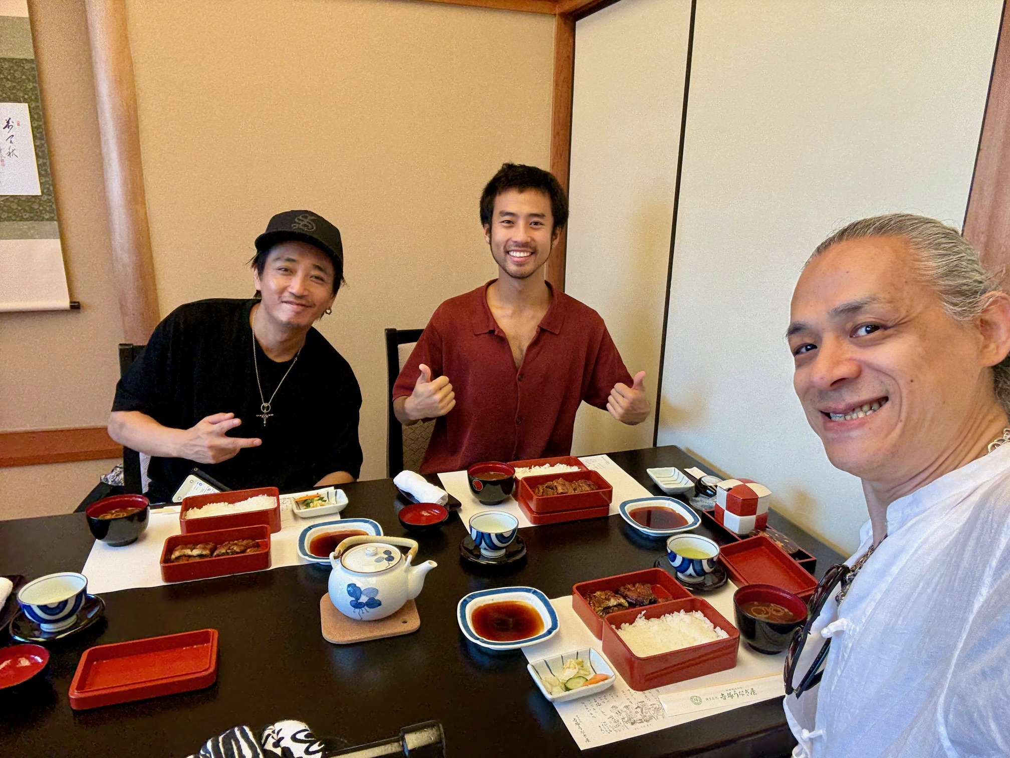 本番前にはスタッフの方が柳川の名物でもある鰻のせいろ弁当を用意してくれて、パリから来たアントワンも「これは美味しいね!」と絶賛しておりました。彼はその好奇心旺盛な性格で日本では何でも食べてみようと思っているらしく、どこに行っても日本らしいものに積極的にトライしていました。