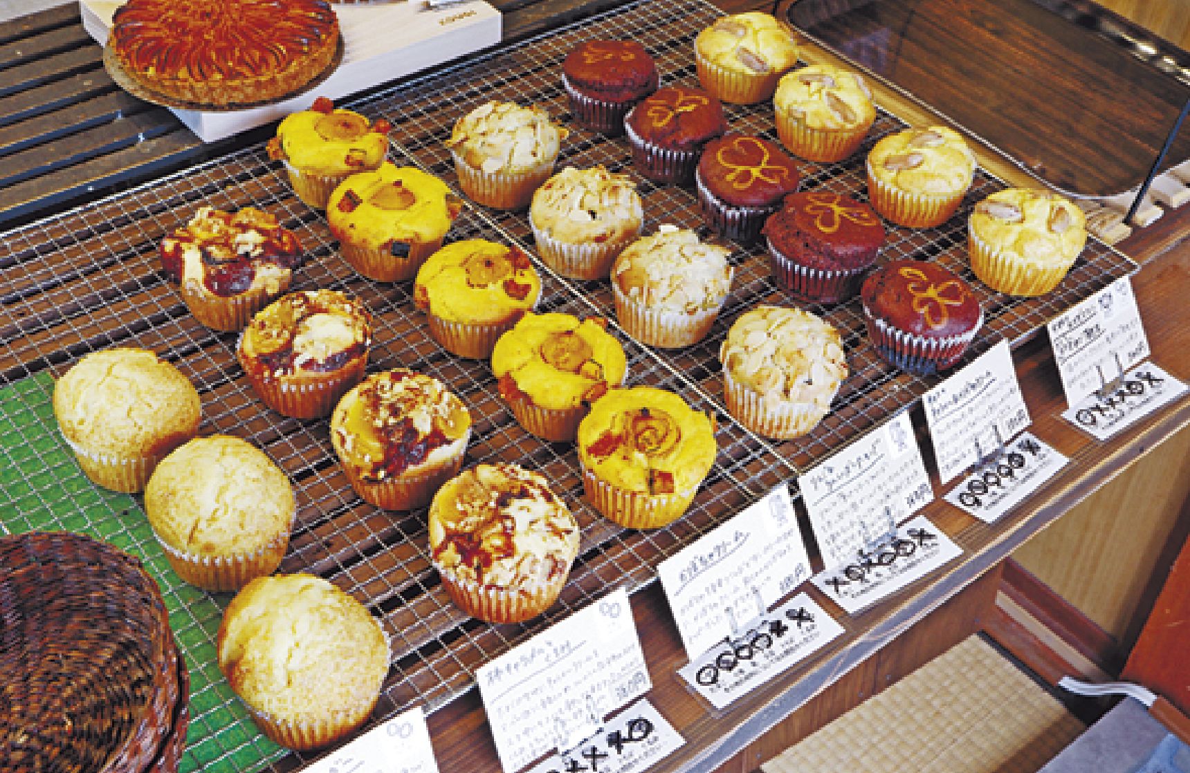 そしておやつに推したいのが、HARUの焼き菓子。店主の広井千春さんが作るのは、国産小麦や菜種油、こうじ甘酒、てんさい糖を使ったマフィンやクッキー、シフォンケーキなど。材料がシンプルで甘すぎず、とても優しい味です。私のお気に入りはマフィンのたまごシュガー。平飼い卵を使っていて、卵の風味が広がり、食べ飽きないおいしさです。メニューは週替わりで、季節の果物を使ったものや、時にはおかず系マフィンもありますよ。