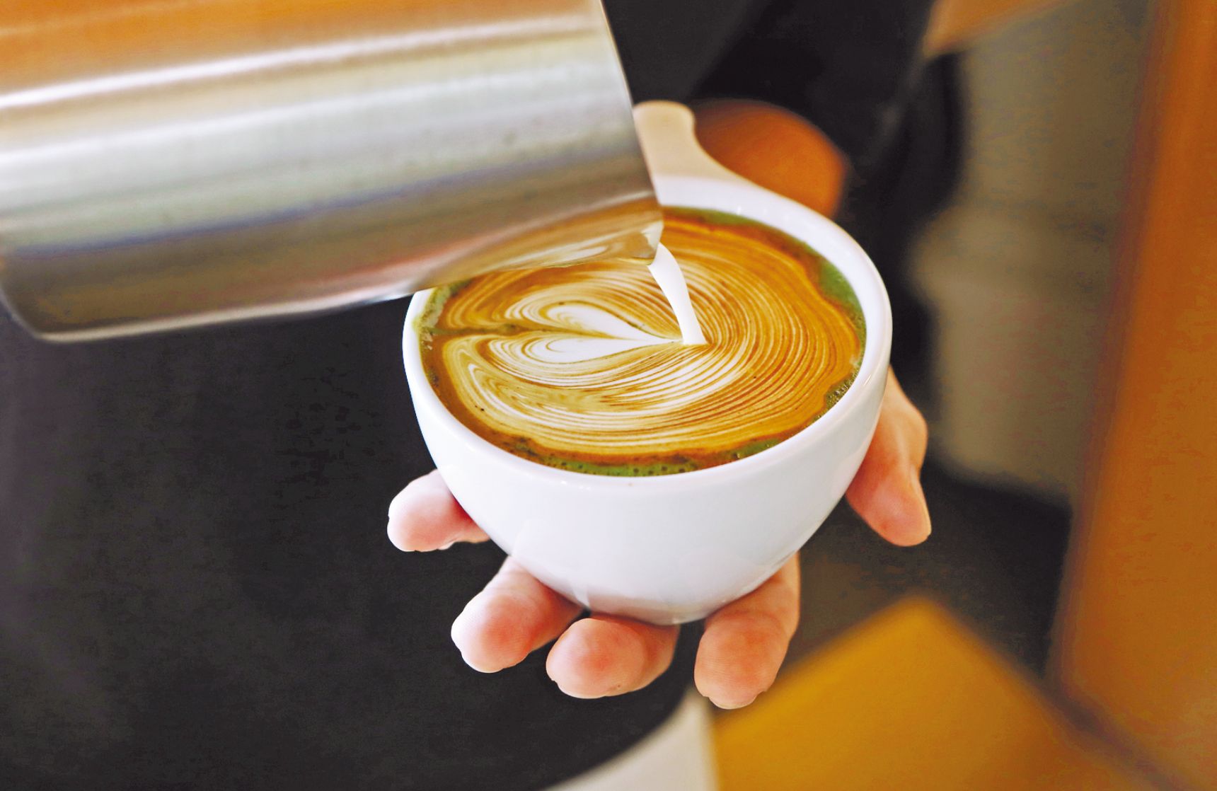 茶せんで立てた抹茶にエスプレッソとミルクを注いだ抹茶ラテは、毎冬の恒例メニュー