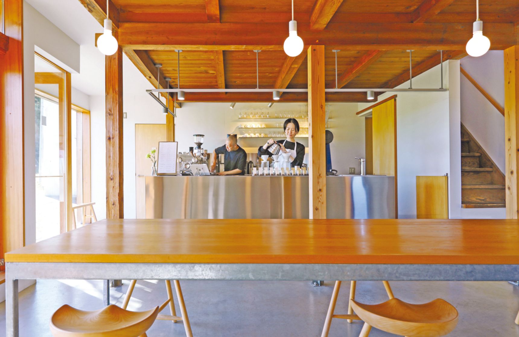 建築士の提案で、店内は民家の外観を裏切るスタイリッシュさ。そのギャップが楽しい