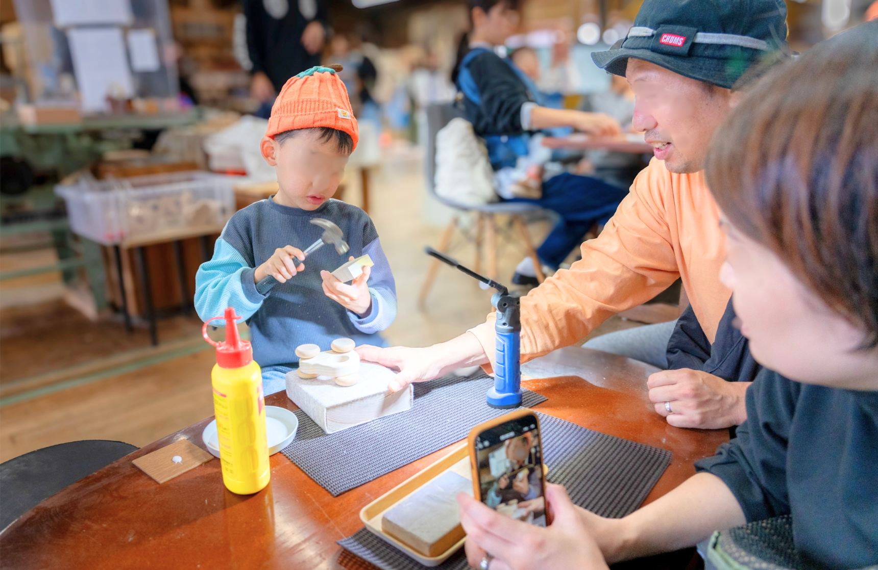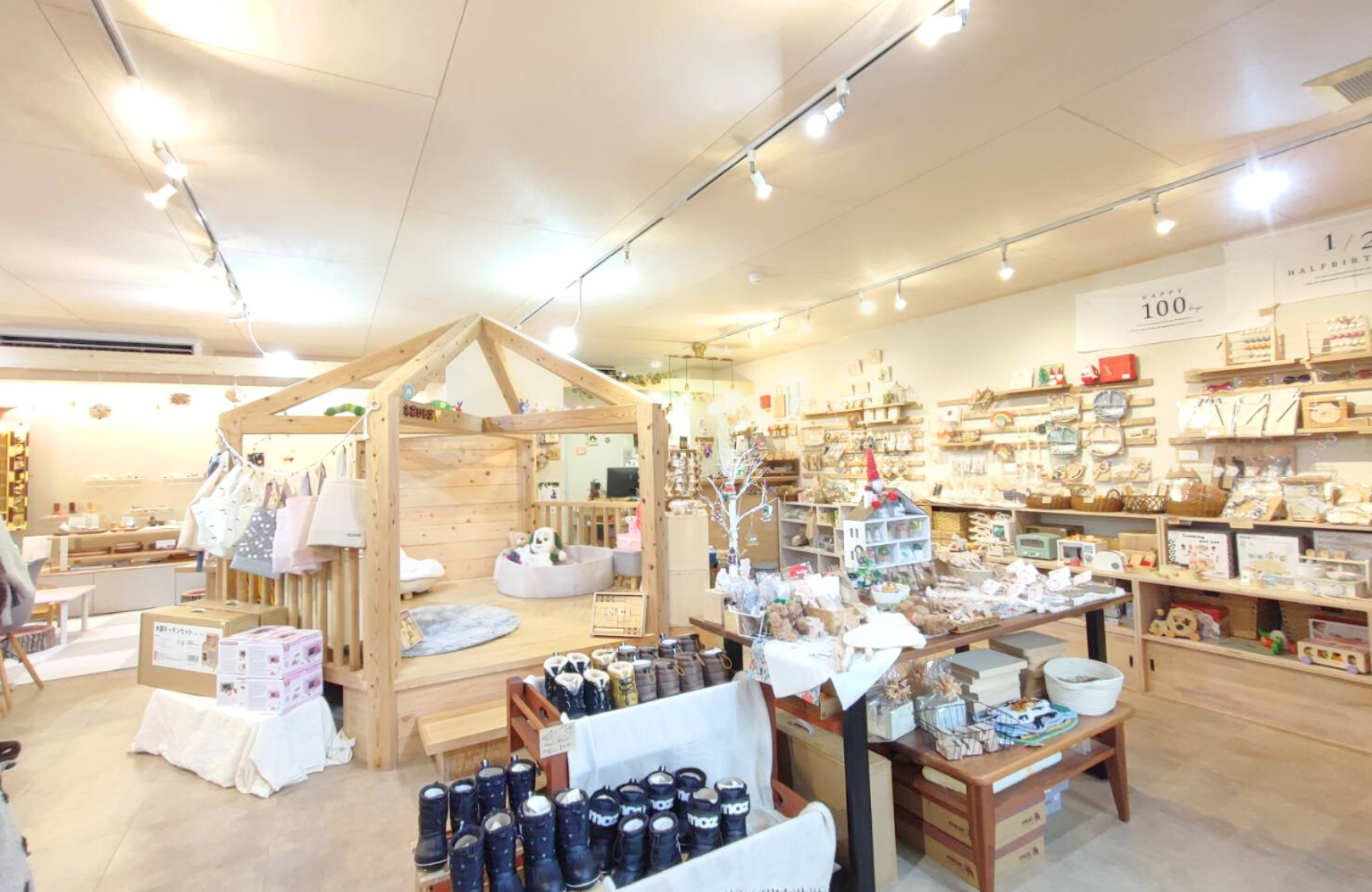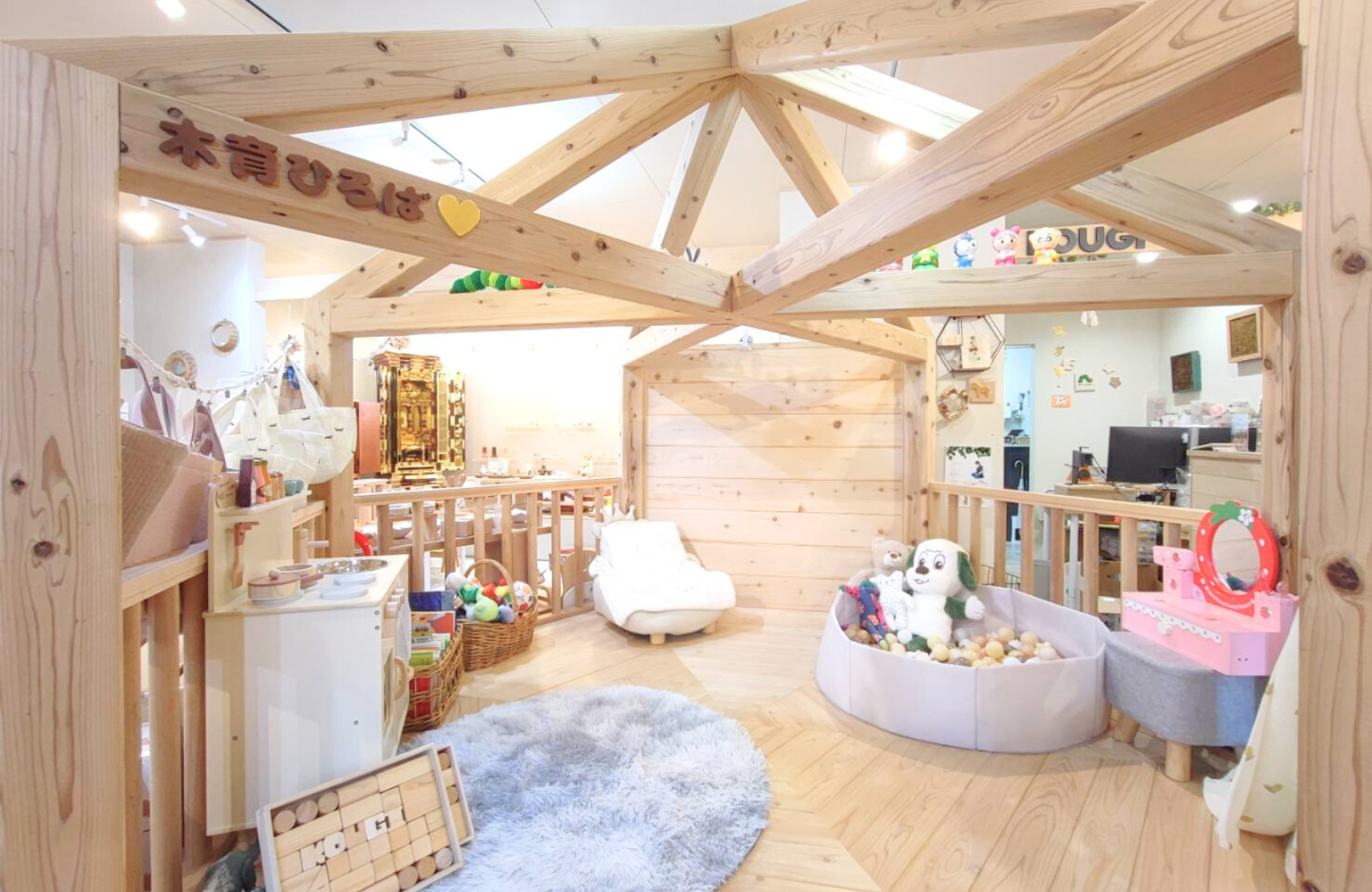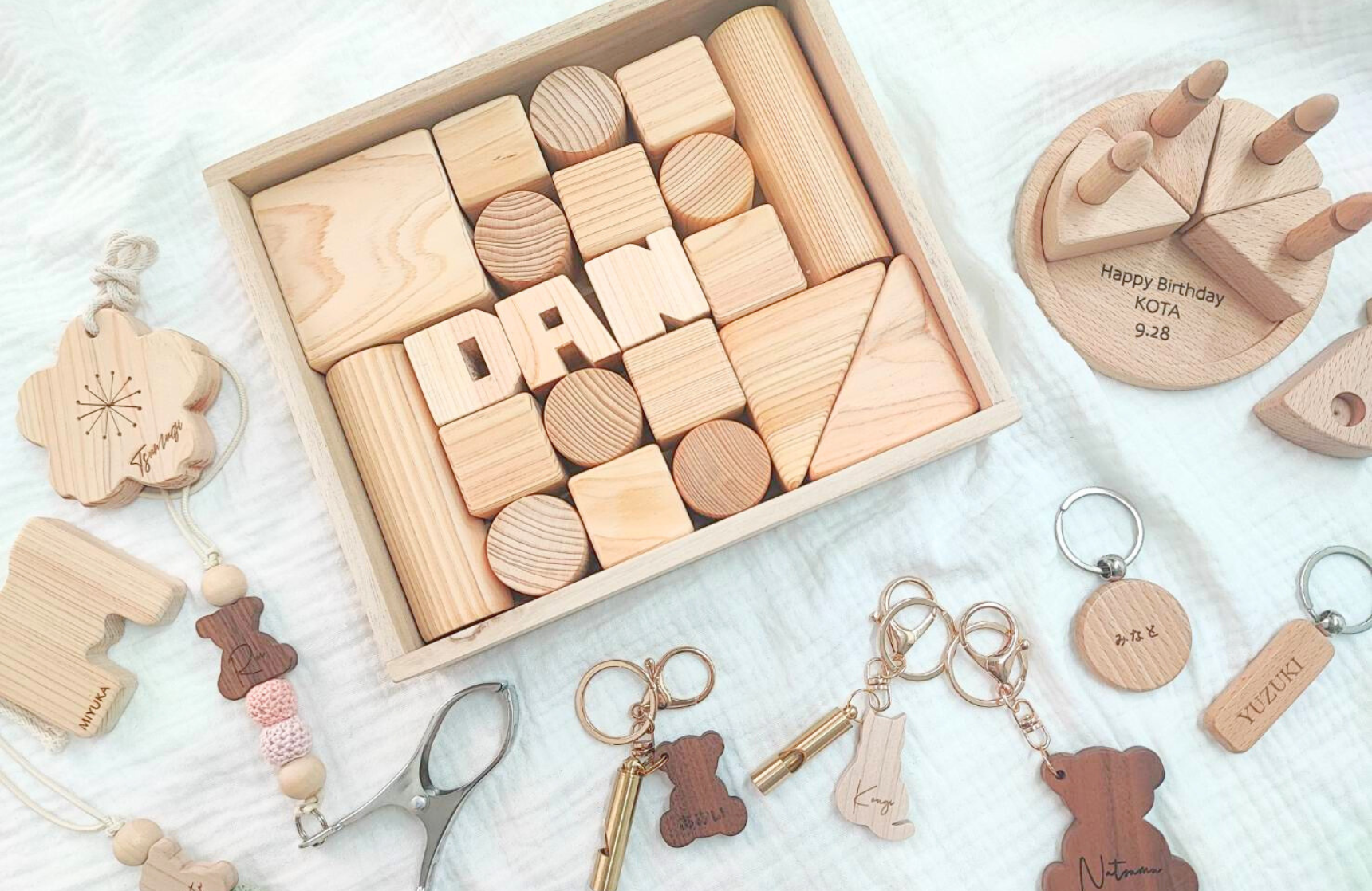 授乳室やオムツ替えができるトイレ、木のぬくもりいっぱいの“木育ひろば”を完備しており、赤ちゃんを遊ばせながらゆっくりお買い物や体験ができるのが大きな魅力。中でも人気No.1は名入れギフトの定番「KOUGIのおなまえ積み木」。出産祝いや記念日の贈り物に選ばれるロングセラーです。