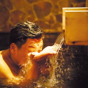 湯口から湯をすくい、目を浸してまぶたをパチパチとしながら目を洗うと、不思議と目がすっきりする。ぜひお試しあれ