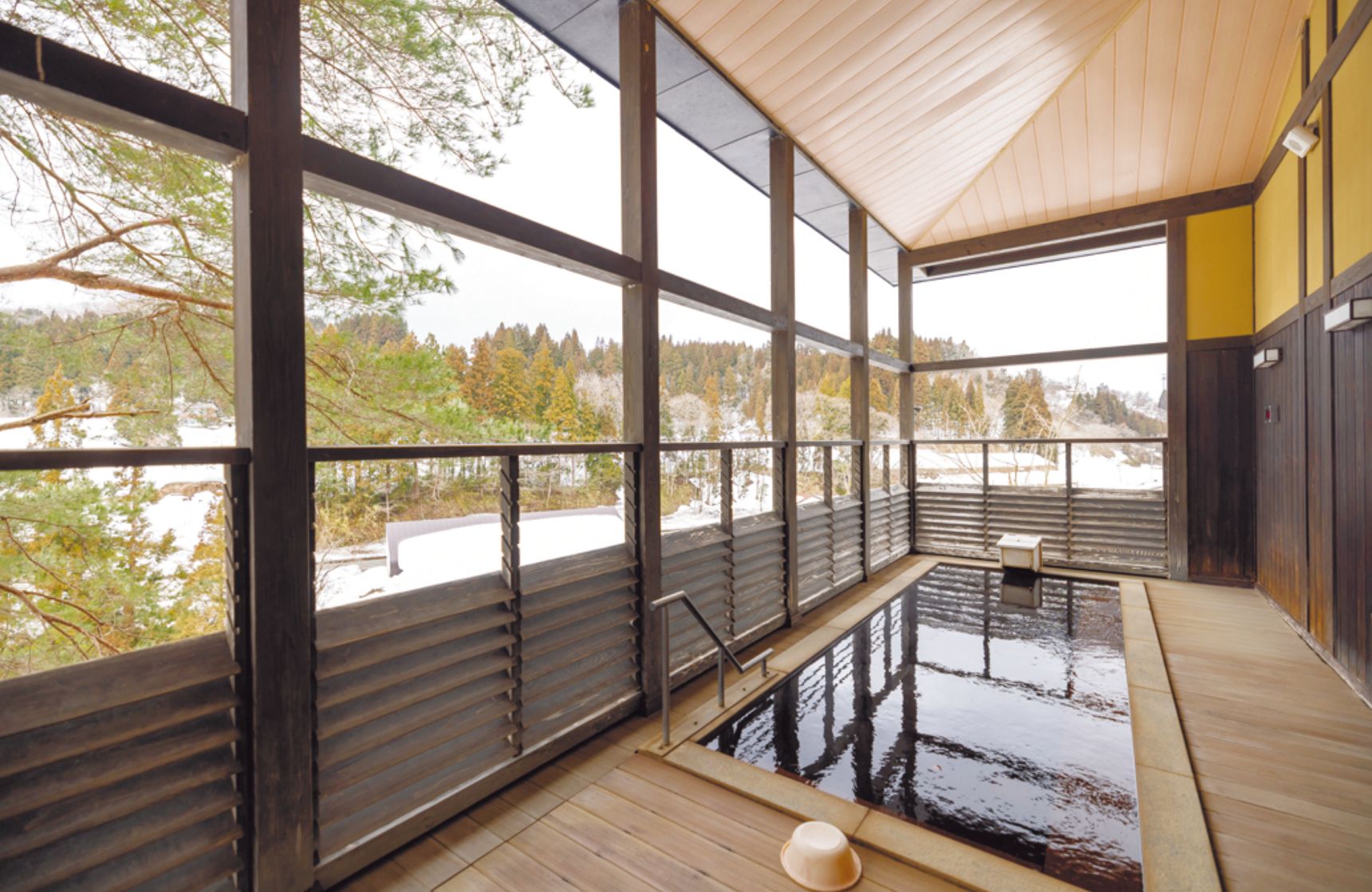地下180mから噴出する自家源泉は“熱の湯”と呼ばれ、じっくり温まることができる。硫黄の香りが包む内湯もいいが、お薦めは日本海側最大級とうたわれる野天風呂。滝湯、泡湯など趣向の異なる湯船に漬かっていると、開放感もあって全身の疲れが溶けていく。ランチは和食処「つゆ草」か、隣接する「四川飯店村上」で。四川飯店では陳建一氏の味を受け継いだ「陳麻婆豆腐」が人気。さんしょうがキリリと効いたうま辛麻婆豆腐と温泉で体はホカホカだ。