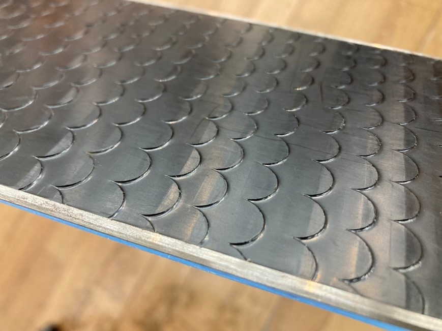 板の裏はウロコ状になっているため、後ろにずり落ちにくい構造。スキン(毛)タイプもあり