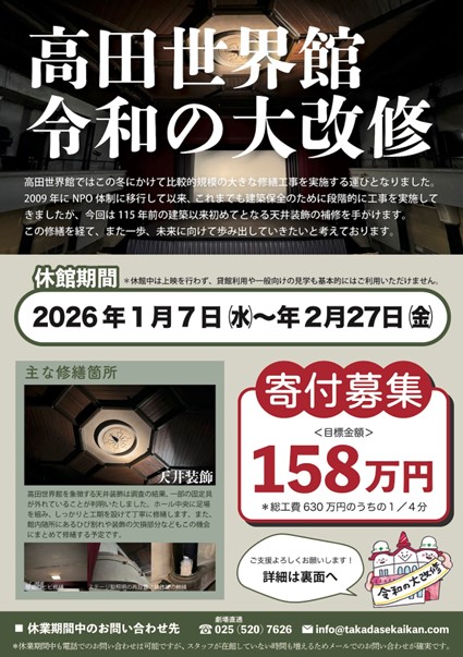 ☆高田世界館では現在修繕プロジェクトを実施中です。詳細はHPへ
