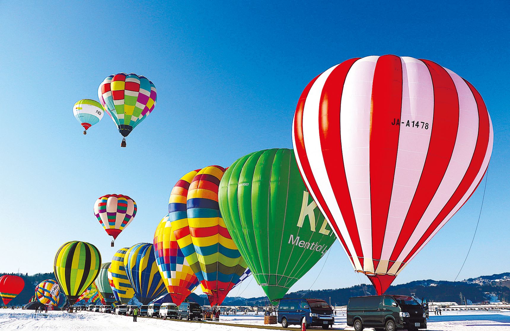 全国から観光客が訪れる冬の人気イベントが、ことしは50回記念大会としてパワーアップして開催される。会場は、本州唯一の雪上フライトで人々を魅了する「日本海カップクロスカントリー選手権」が行われる西中会場と、初日夜限定の光のショー「グローバルーンフェスティバル」などの各種イベントが行われる平沢会場の2カ所。真っ白な雪原に色とりどりの熱気球が舞い上がる昼間の景色だけでなく、オレンジ色に光る熱気球の背景にスターマインが打ち上がる夜の幻想的な光景も感動を誘う。ことしの「グローバルーンフェスティバル」では、誰でも参加できるランタンリリース「夢ランタン大作戦」(要事前申込)が実施され、例年以上にロマンチックな雰囲気に。また昼の熱気球試乗体験でにぎわう平沢会場では、記念大会限定の日本酒、ピンバッジも販売される。