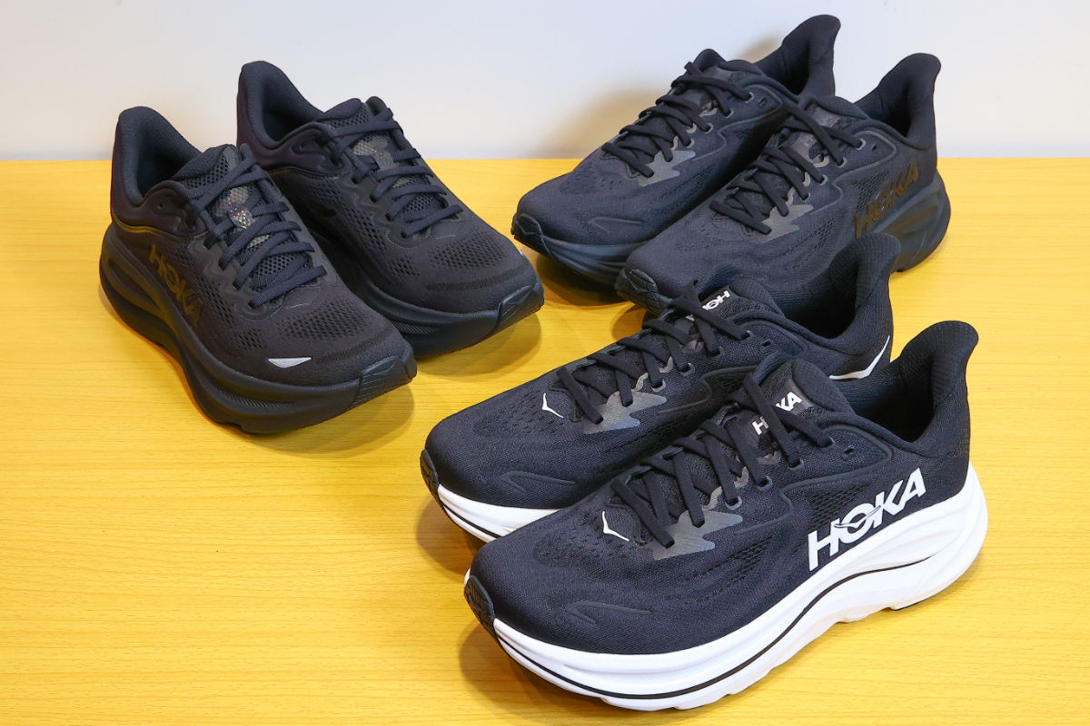 手前から右周りにホカのBONDI 9 各24,200円、CLIFTON10 19,800円