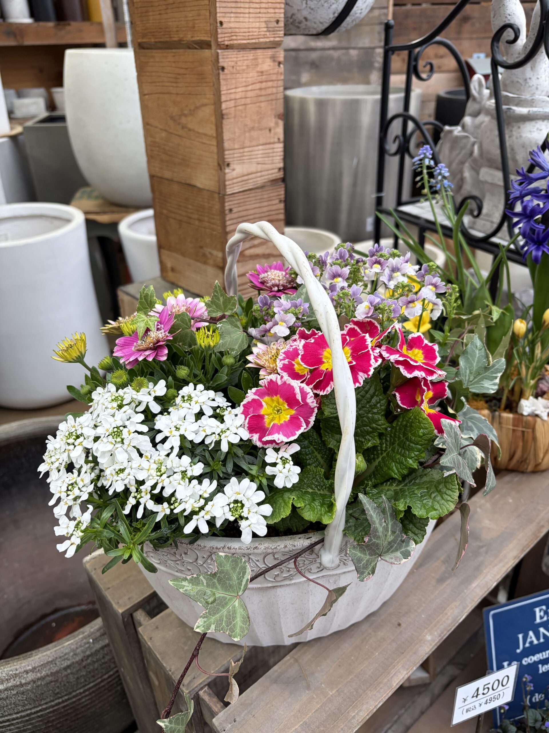 持ち手がついた寄せ植えは、そのまま飾れて贈りやすいのも嬉しいポイントです!