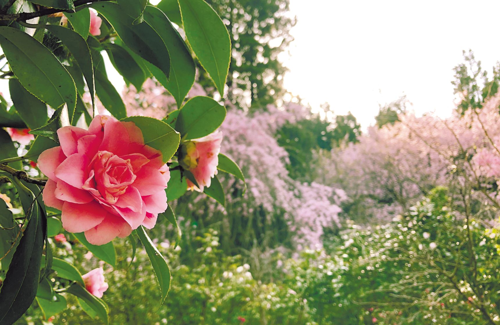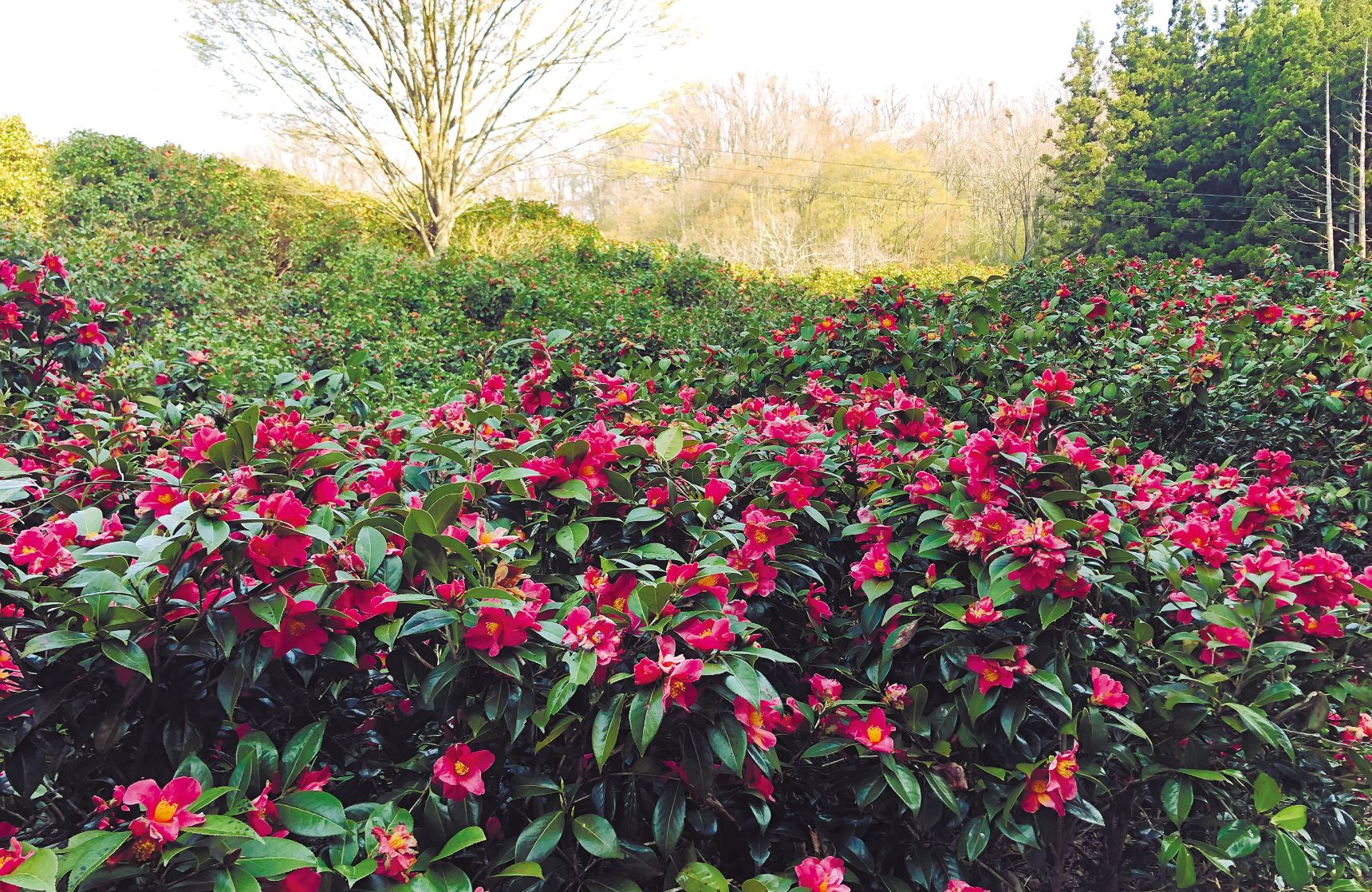 角神雪椿園の見頃は4月中旬。自生種をこれだけ多く見られるのは、全国的にも珍しいという