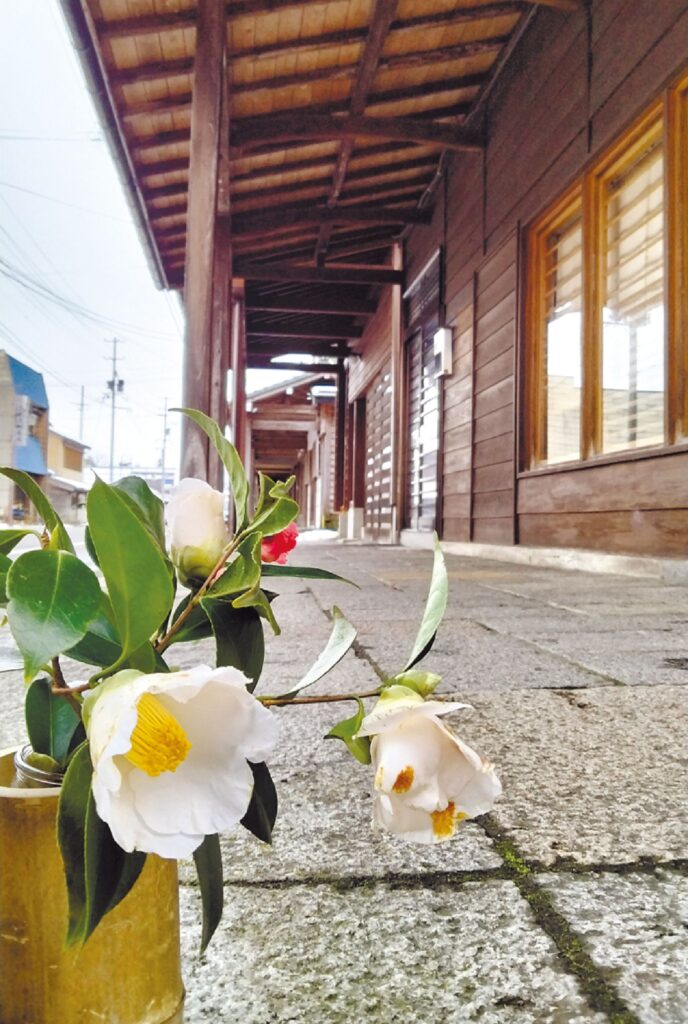 雪椿まつり観椿会は、ことしは4/4(土)から5/10(日)まで開催。期間中「雁木de雪椿」として、とんぼ通りには鉢植えの雪椿が並ぶ。