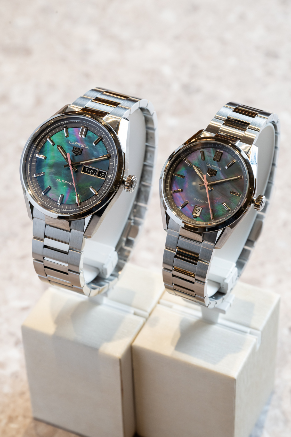 左からタグ・ホイヤーのカレラ ジャパン リミテッド エディション41mm 781,000円、36mm 621,500円