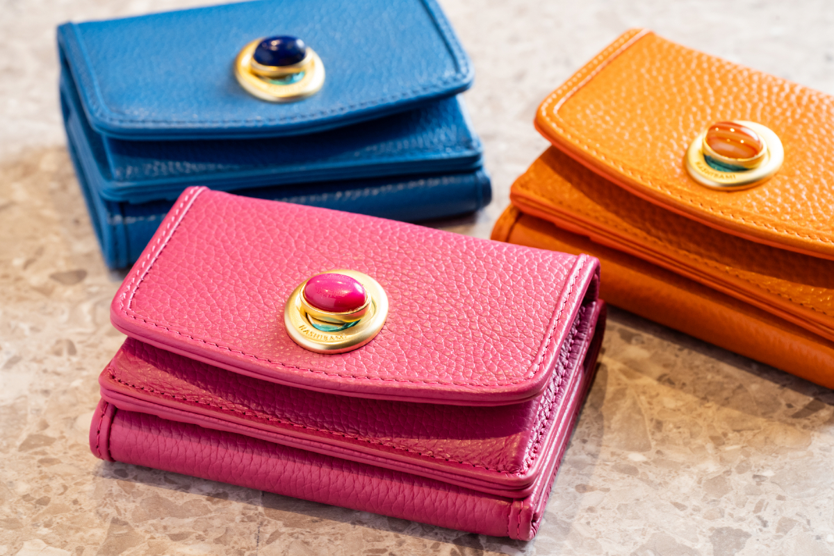 日本人デザイナーが手がける小物ブランド、ハシバミのミニウォレット各13,200円