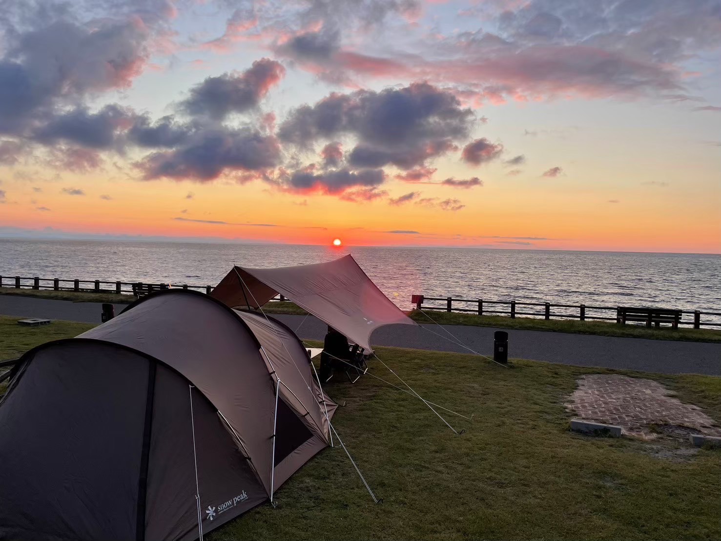 全国的にも珍しい、全サイトがオーシャンフロントのキャンプ場です。天気のいい日には、日本海に沈むオレンジ色の夕日が一望できます。波音のBGMとともに眺める時間は、忘れられない極上の体験となります。