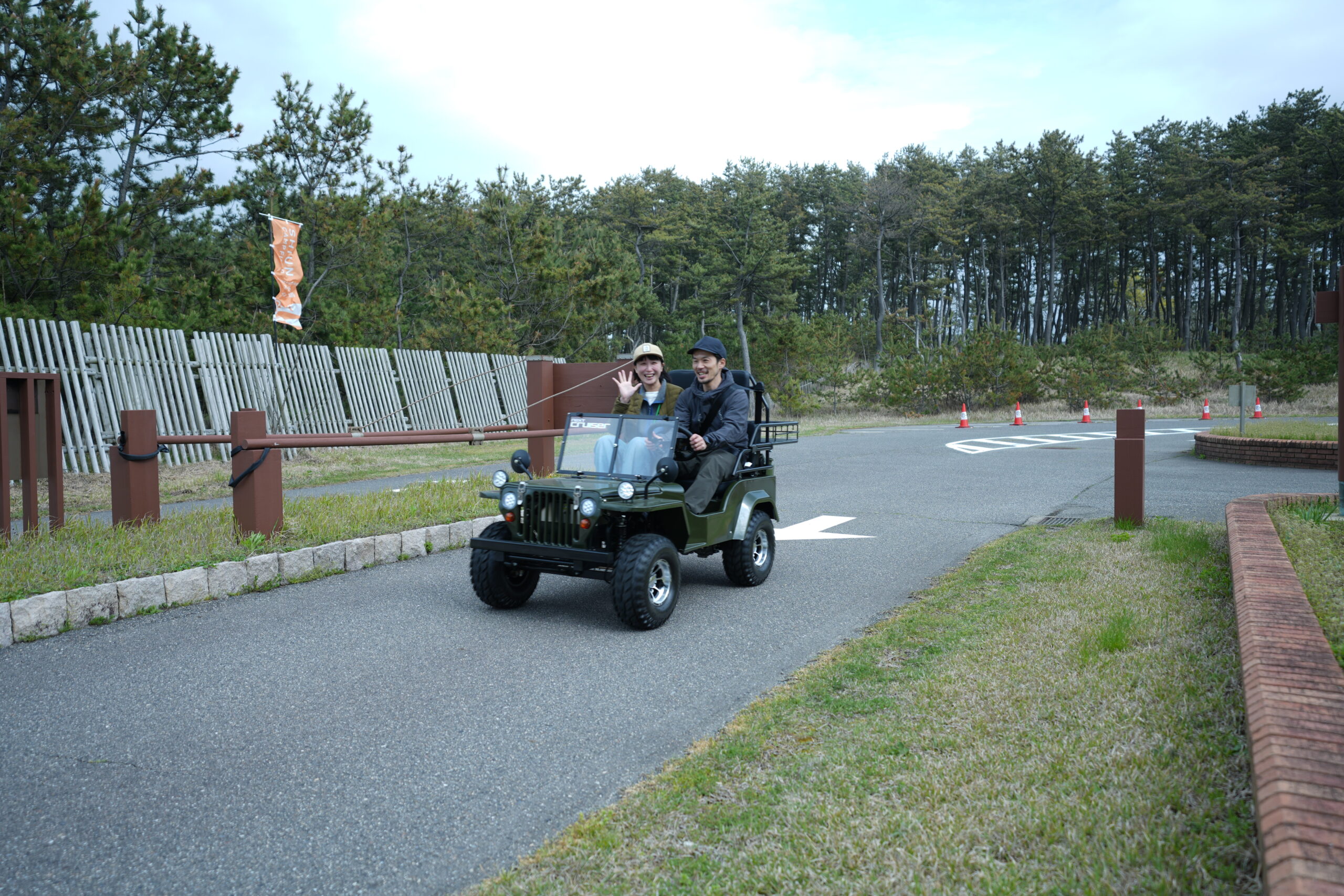 SHIUN CAMP FIELDを利用されたことがある方はご存じとは思いますが、あの!紫雲寺のシンボル的な“アレ”です!現在も大人気のレンタル電動キックボード同様、小さな車体からは想像できないほどのパワフルな走りを、海風をダイレクトに感じながら体験することができます。
